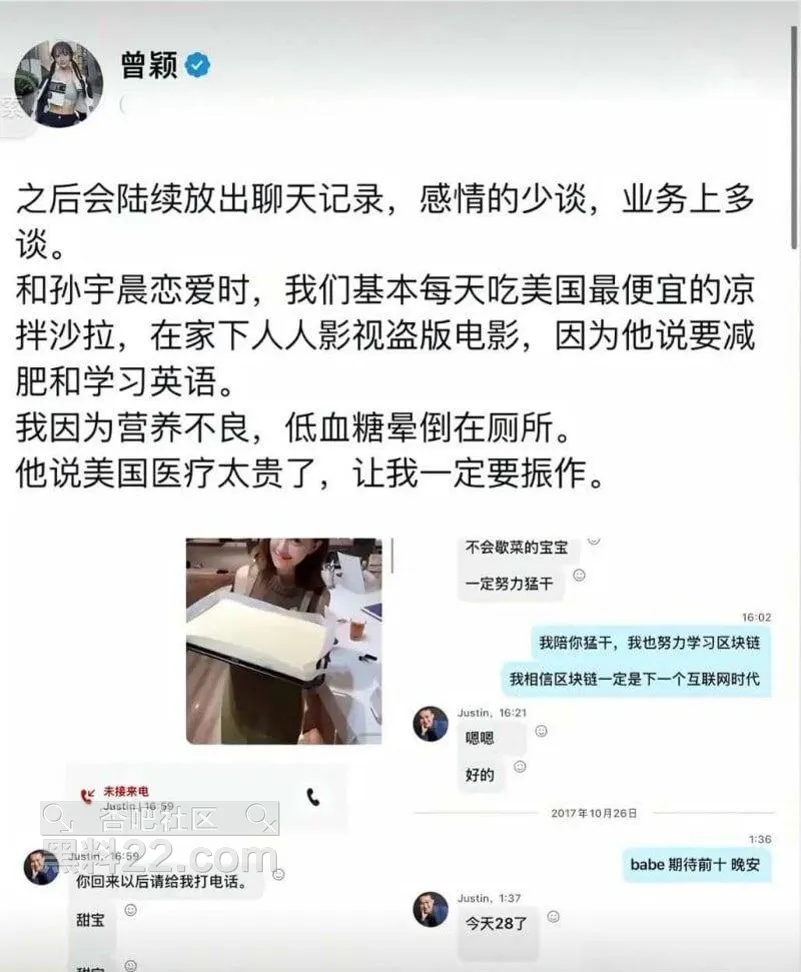 [大学校园] 币圈大佬 孙宇晨 前女友曾颖公开手撕 操控市场情感欺骗 谷爱凌裸照曝光 币圈爱泼斯坦实锤