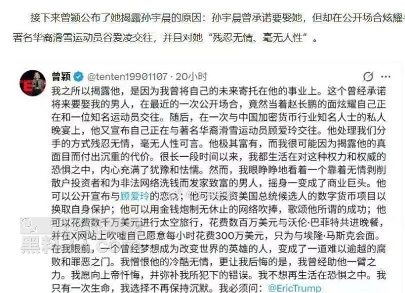 前女友曾颖公开手撕 操控市场情感欺骗 谷爱凌裸照曝光 币圈爱泼斯坦实锤